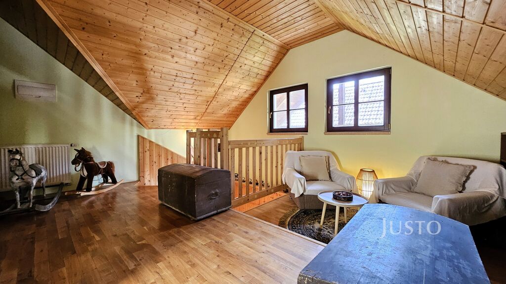 Tento prostorný vícegenerační dům prošel rozsáhlou a citlivou rekonstrukcí a je aktuálně rozdělen na dvě samostatná křídla, čímž nabízí možnost komfortního bydlení pro více rodin, kombinaci vlastního bydlení s pronájmem, případně i komerční využití.