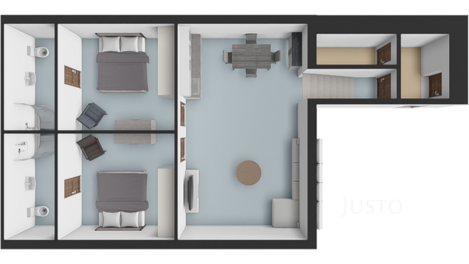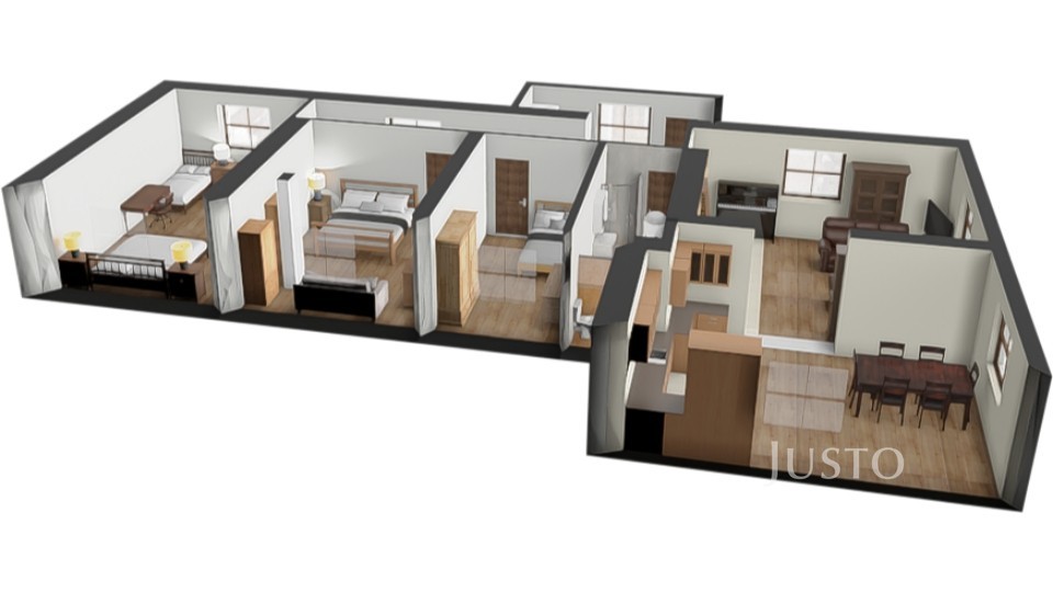 Byt 3+kk se dvěma koupelnami (62 m²)