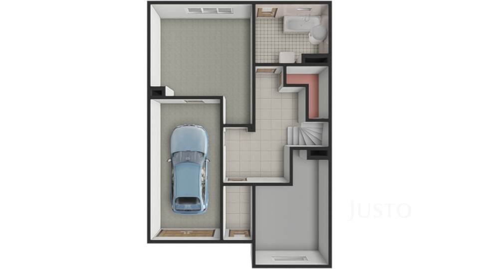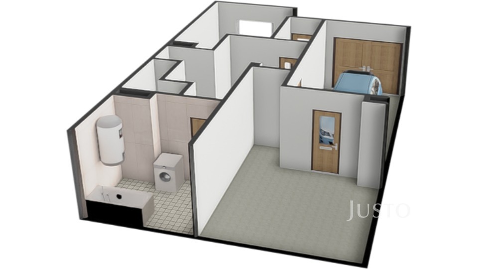 Přízemí: garáž, dílna, prádelna, kotelna, komora, 67 m²