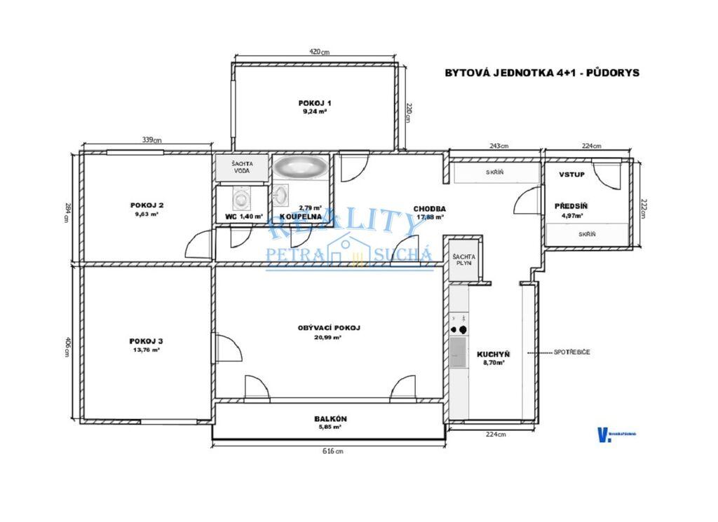 Tento celkově dobře udržovaný byt prošel rekonstrukcí původního umakartového jádra na zděné, kdy koupelna a toaleta jsou od sebe oddělené a je zde tím zajištěno dostatečné soukromí. Obklady modré barvy působí velmi příjemně a prostor koupelny je dostatečný i pro umístění svislé sady pračky a sušičky. Středem bytu vede prostorná chodba s vestavěnou skříní. Stejně prostorná skříň se nachází i v zádveří menší vstupní chodby. Je zde tedy dostatek úložného prostoru pro oblečení i další věci všech členů rodiny. K dispozici tři obytné místnosti pro pokoje a ložnici a hlavní obývací místnost sousedící s kuchyní. Záměr původních majitelů bylo i propojení těchto dvou místností a vytvoření většího otevřeného prostoru. Součástí prodeje jsou i vestavěné spotřebiče v kuchyni. Byt má k dispozici i prostornou lodžii s vlastním zasklením. Je tedy neustále v suchu a lze si tady užít chvíle klidu u kávy, případně výhledu za každého počasí. Z oken pokojů je nádherný výhled na celé město i okolní zeleň. Pro lepší představu rozložení místností využijte naši fotogalerii a plánek bytu.
