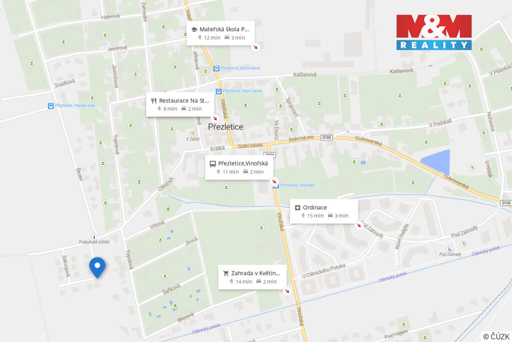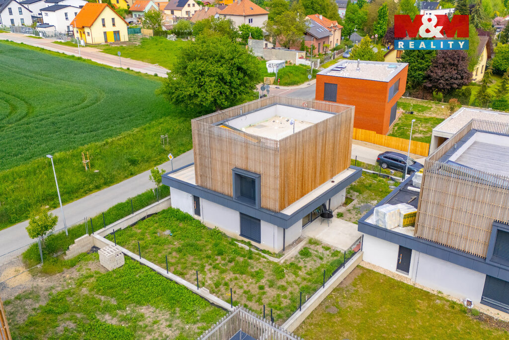 K prodeji nabízíme poslední moderní rodinný dům 4+kk v projektu "zeleného bydlení" v Přezleticích. Tento cihlový, dvoupodlažní dům nabízí komfortní a úsporné bydlení díky tepelnému čerpadlu s podlahovým vytápěním, klimatizace, šetrnému hospodaření s dešťovou vodou a zelené střeše s možností terasy, která zlepšuje tepelně i hlukově izolační vlastnosti. Energetická náročnost budovy je třídy B. Dům se nachází v klidné části obce, na pozemku o rozloze 393 m². Malebné okolí Ctěnického háje a blízkost nově budované školy v pěší vzdálenosti přispívají k ideálnímu rodinnému bydlení. Lokalita na hranicích Prahy zajišťuje skvělou dostupnost do města. Dům je zkolaudován a připraven k předání. Nepropásněte tuto jedinečnou příležitost!