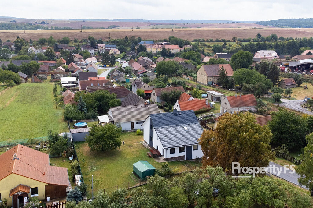 V současné době vyhledávaná klidná lokalita. Zastávka autobusů kousek od domu. Okolní města Louny 16km a Slaný 15km. Po dálnici D7, která spojuje Chomutov (47km) a Prahu (49km, 48minut) se pohodlně dostanete za prací.