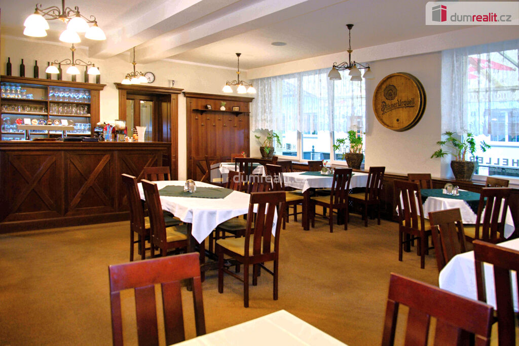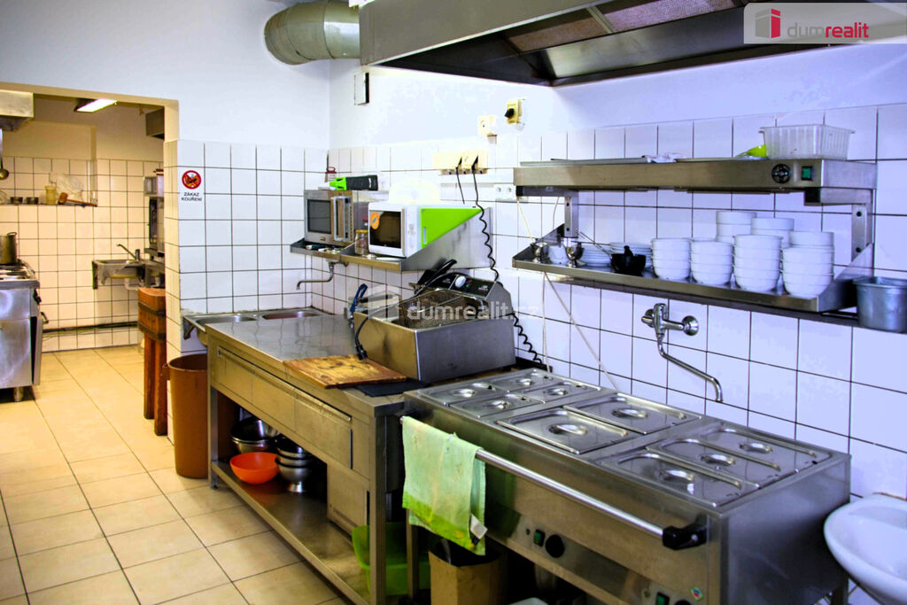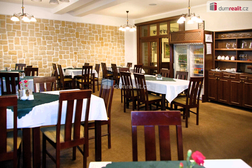 Dumrealit.cz Vám zprostředkuje v exklusivním zastoupení majitele prodej komerčních prostor o ploše 254 m² s možností vybudování bytu, se vkusně zrekonstruovanými interiéry. Dispoziční řešení: od hl. vchodu středem budovy prochází prostorná chodba, která vyúsťuje u zadního vstupu do budovy a je zde umístěn recepční pult. Nalevo od této chodby je hlavní prostor 58 m² s nímž je propojen salonek 33 m². Napravo od centrální chodby je další prostor o velikosti 37 m², který lze využít i pro zcela samostatný provoz/pronájem. Prostory dosud sloužily jako restaurace, proto je další součástí plně vybavená kuchyně o třech místnostech a přiléhající velký chladící box. Ke kuchyni je pak k dispozici další zázemí v podobě velkorysých skaldových prostor, do kterých je přístup i z venkovního prostoru od parkovacích stání za domem pro zásobování. Na konci centrální chodby v zadní části je sociální zařízení. Nemalým bonusem je rovněž řešení vytápění tepelným čerpadlem pro celou prochu nabízených prostor, objekt je napojen na veškeré IS, vč. plynu. Možnost samostatného odkupu dalších prostor v podkroví pro využití k dalším účelům vč. bytu o ploše 160 m². K objektu jsou 2 parkovací místa, která jsou podmínkou pro případnou rekolaudaci na byt - k bytu je nutno 1 parkovací stání.