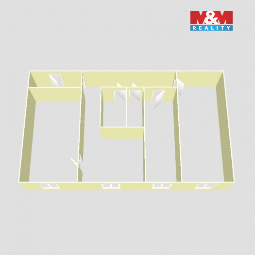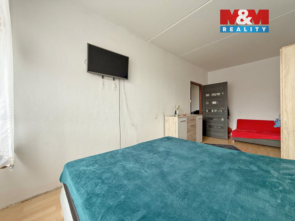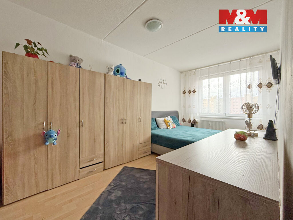 Byt je v původním, ale udržovaném stavu a disponuje velmi praktickým dispozičním řešením: vstupní chodba, obývací pokoj, kuchyně s jídelním koutem, ložnice, dětský pokoj, koupelna a samostatné WC.
