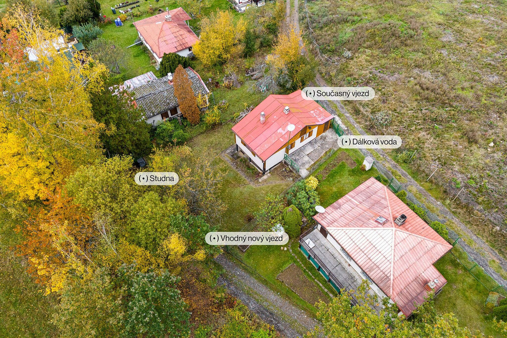 V suterénu je sprchový kout s elektrickým bojlerem, sklad, vodárna a dílna (bývalá garáž), což zajišťuje praktické zázemí pro každodenní i rekreační využití.