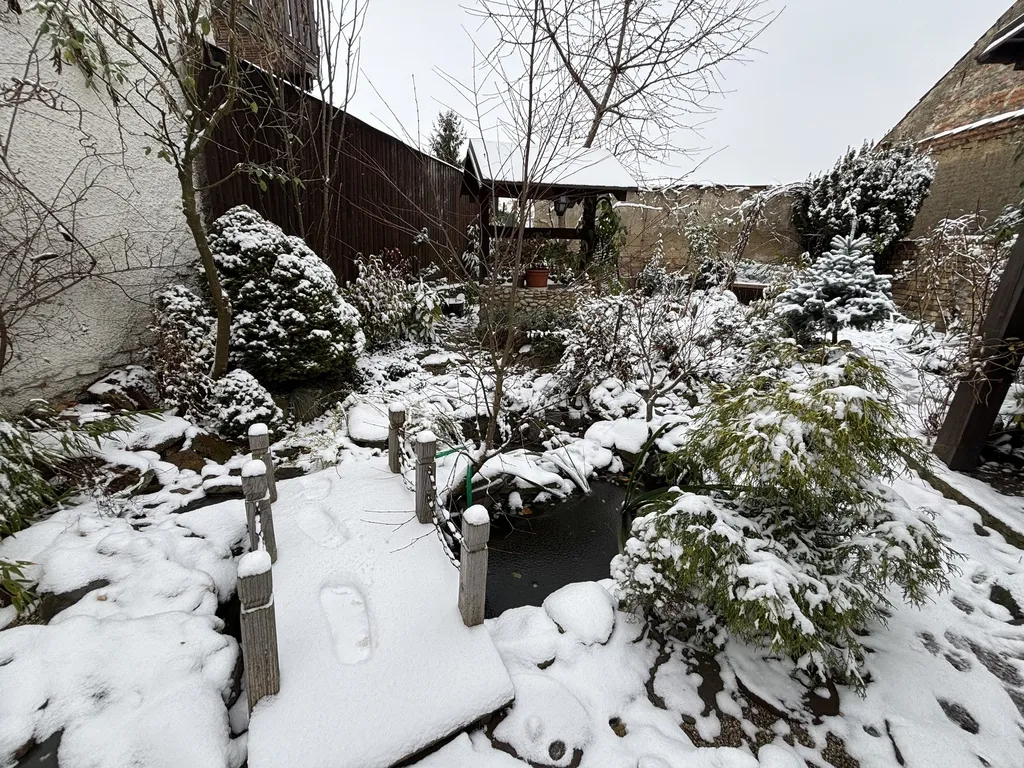 Třešničkou na dortu je nádherná japonská zahrada s jezírkem, fontánou a terasou s posezením, grilem a originálním ohništěm v soukromí vzrostlých keřů. Dominantou zahrady je funkční dobová studna s celoročním vodním zdrojem.