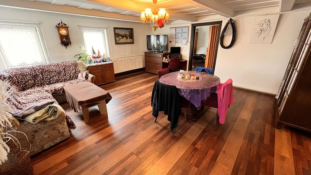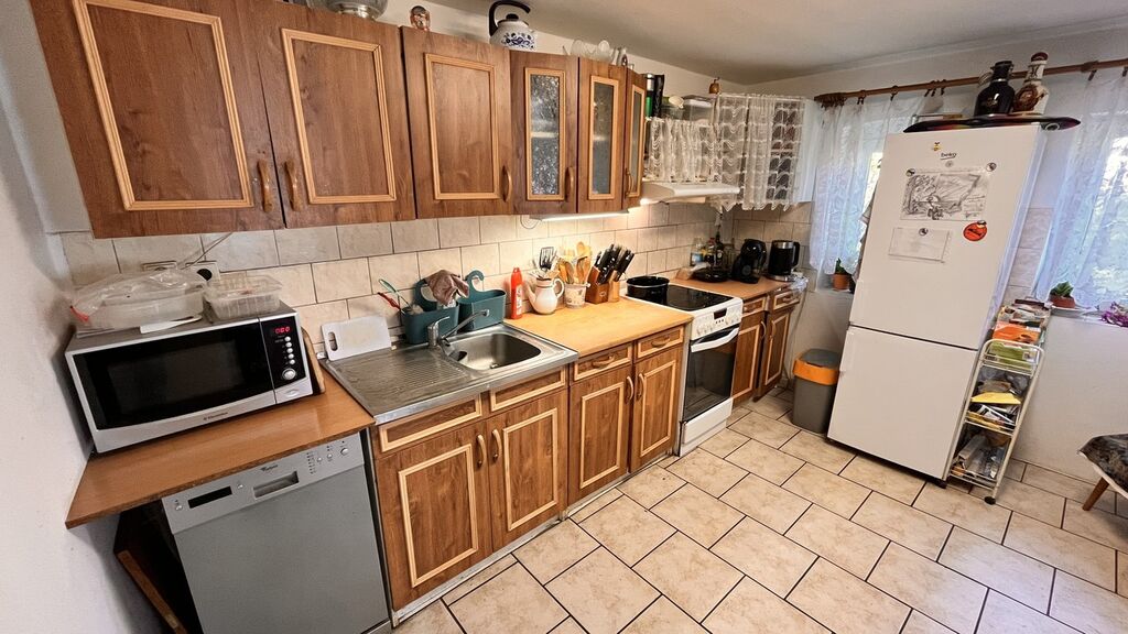 Samotná nemovitost má zastavěnou plochu přes 200m2 a nový majitel má tedy nespočet možností jak prostor využít. V přízemí nalezneme vstupní chodbu ze které se dostaneme do kuchyně ( cca 12m2 ). Dominantou je beze sporu obývací pokoj s rozlohou cca 31m2 s okny na jihovýchod. Ložnice vedle má cca 13m2.