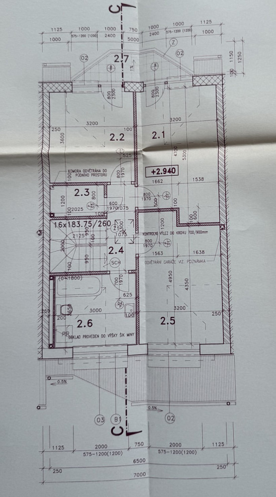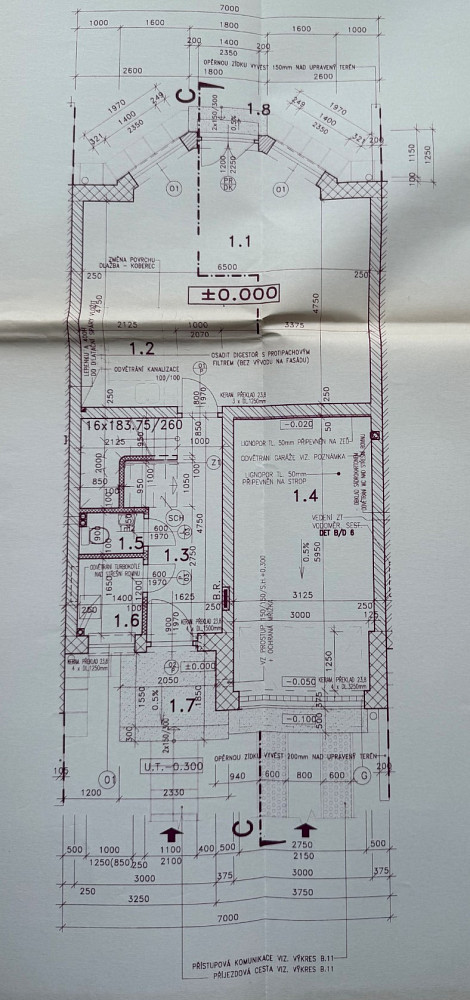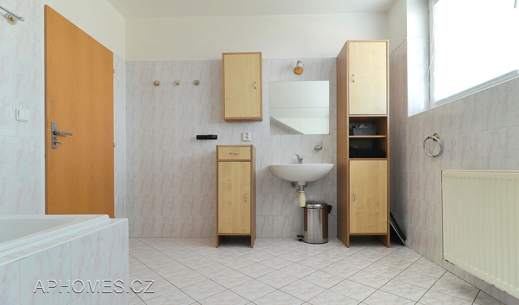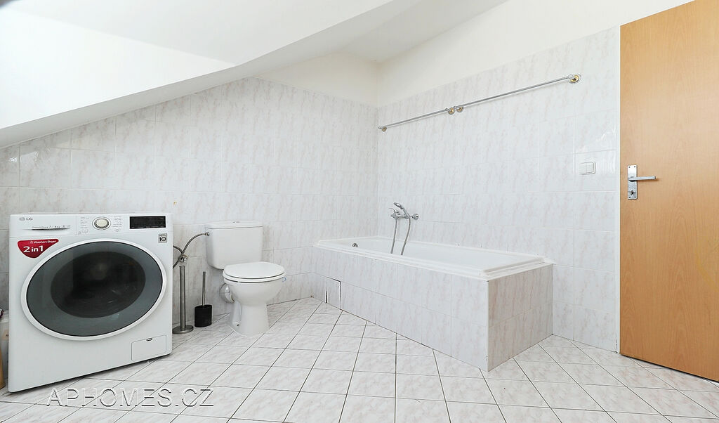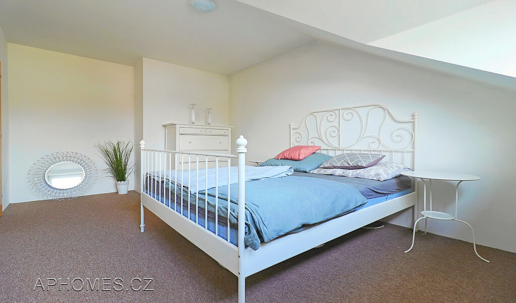 V 1.patře (2.NP) se nachází chodba, tři neprůchozí ložnice (dvě mají vstup na balkon), komora, prostorná koupelna s vanou.