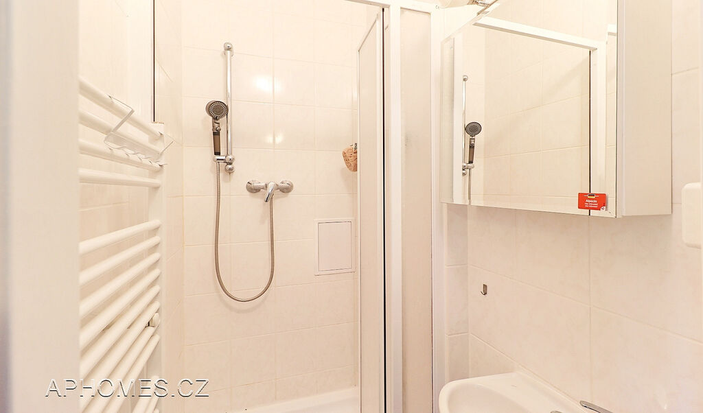 Součástí vybavení zůstává kuchyňská linka, sporák se sklokeramickou varnou deskou, elektrickou troubou a digestoří.