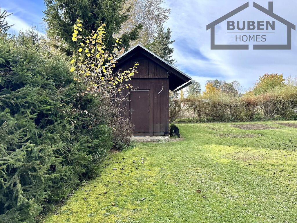 Celková plocha pozemku činí 425 m2. Pozemek je v katastru nemovitostí veden jako trvalý travní porost. Na zahradě se nachází chatka (15m2, zapsaná v katastru nemovitostí jako jiná stavba) a kolna na nářadí.