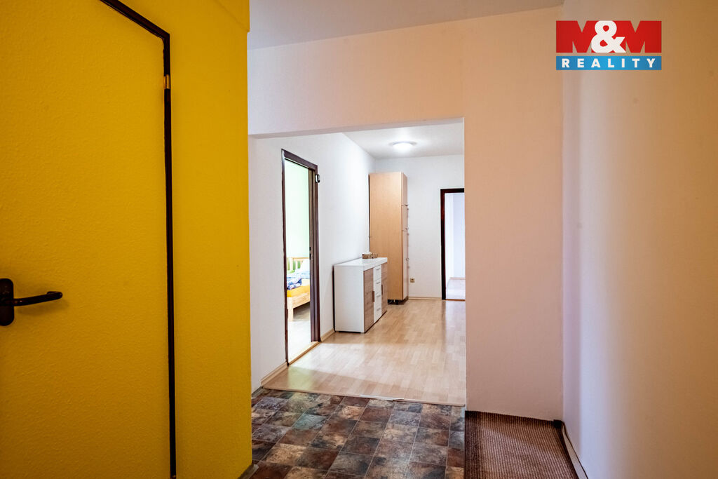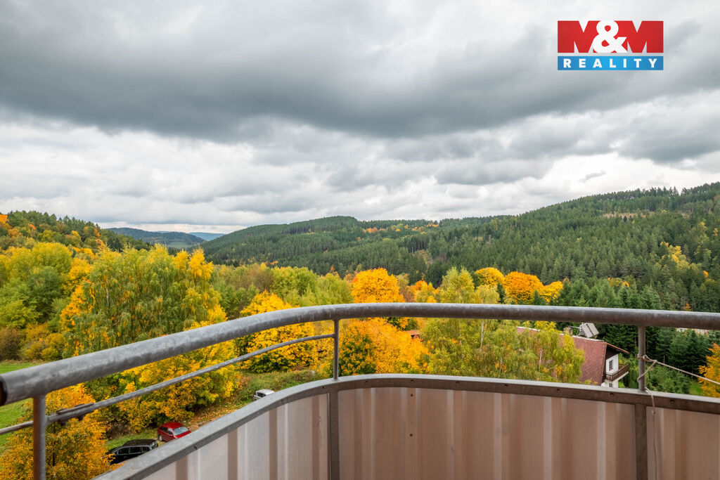 Nabízíme k prodeji prostorný družstevní byt 3+1 s balkónem, situovaný v okrajové části sídliště ve Vimperku. Byt se nachází v 6. patře panelového domu s novým výtahem, celkem 9 nadzemních podlaží. Užitná plocha činí 80 m². Nemovitost je po částečné rekonstrukci a nabízí moderní kuchyň s vestavěnými spotřebiči, jako je myčka, trouba. Dispozice bytu zahrnuje prostornou předsíň, koupelnu, samostatné WC, kuchyň, obývací pokoj a dvě velké ložnice. Chodba je dostatečně velká pro využití jako pracovna, nebo jídelna. Byt se nachází na klidném sídlišti s veškerou občanskou vybaveností v blízkosti. Stav nemovitosti je velmi dobrý, ideální pro rodinné bydlení. Nechte se okouzlit tímto příjemným a světlým bytem s výhledem na okolní krajinu.