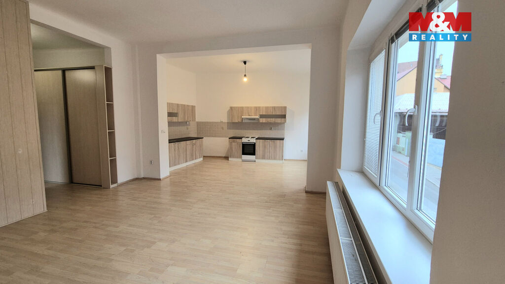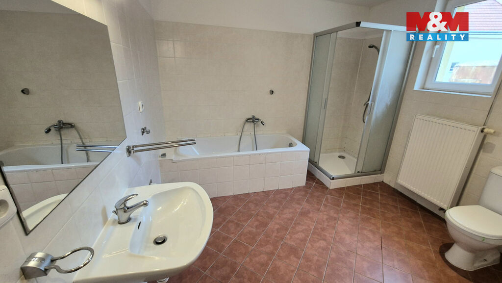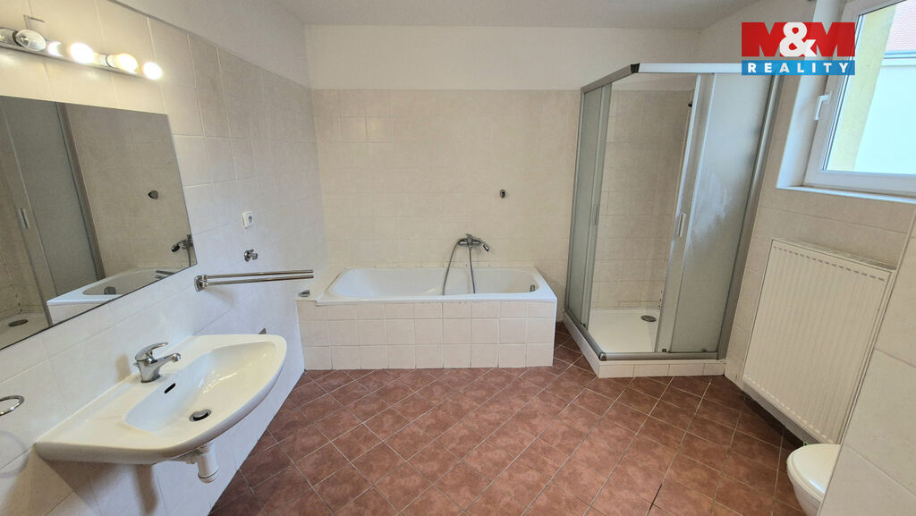 Nabízíme k pronájmu velký a hezký byt 3+kk s terasou o velikosti 94 m2 v centru Kladna, ul. Dr. Vrbenského. Byt se nachází v 1.patře cihlového domu, vybaven je prostornou kuchyňskou linkou se sporákem a společným obývacím pokojem, koupelnou s vanou a sprchovým koutem, umyvadlem a společným WC, v chodbě je velká vestavěná skříň, dále 2 samostatné pokoje. K bytu náleží rozlehlá terasa o velikosti 45 m2. Možno pronajmout i firmě na IČ, kdy pak veškeré náklady spojené s bydlením dostanete do účetních nákladů. Nebudou akceptováni zájemci u nichž bude důvodná obava, že by nebyli schopni hradit své závazky vůči pronajímateli, tj. zájemci s exekucí a v insolvenci.Výborná lokalita v centru Kladna s veškerou občanskou vybaveností a dopravní dostupností. Volný ihned.