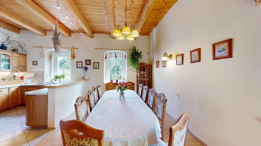 Prostorný byt 3+1 (kuchyň s jídelnou s krbovými kamny, obývací pokoj, ložnice), koupelna, dílna, technické zázemí, šatna, komora, výtah,