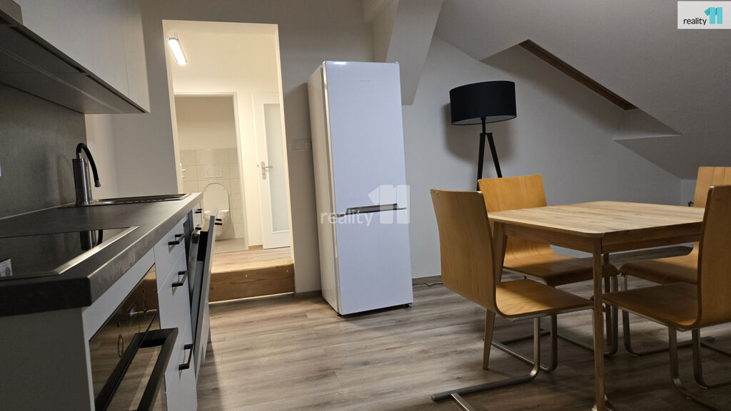 Nabízíme pronájem podkrovního zařízeného bytu 2 + kk o výměře 40,18 m², po kompletní rekonstrukci. K bytu je možné pronajmou parkovací místo pod uzavřením ve dvoře objektu za cenu 3.800,- Kč měsíčně. Byt se nachází v 5. patře činžovního domu s výtahem a recepcí v oddělené podkrovní sekci společně se třemi dalšími podobnými byty. Je vybaven klimatizací, novou kuchyňskou linkou s varnou deskou, myčkou a mikrovlnnou troubou, pečící troubou, lednicí s mrazákem, jídelním stolem s židlemi a koupelnou s WC a sprchovým koutem. V koupelně je pračka s funkcí sušičky. Samostatný pokoj orientovaný na jihozápad má výhled na letenskou vodárnu a je vybaven manželskou postelí a skříní. V předsíni jsou skříňky na uložení obuvi nebo osobních věcí. K bytu patří uzamykatelná komora na společné chodbě v patře o velikosti 0,5 m². Zálohy na energie a služby 4.960,- Kč měsíčně. Samotná lokalita Letné disponuje veškerou infrastrukturou dostupnou v Praze s výhodou dvou bezprostředně sousedících parků - Stromovky a Letenských sadů. Dobrá je i dopravní dostupnost jak veřejnou dopravou tak přístup k dálniční síti, či letecké dopravě. Ev. číslo: 27847.