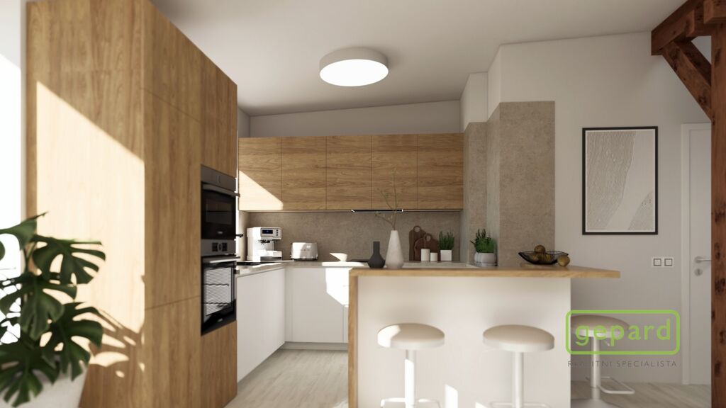 Dispozice lze snadno upravit na plnohodnotné 3+kk, což je možné si případnou přestavbu prohlédnout ve fotogalerii díky připravené vizualizaci a alternativnímu půdorysu.