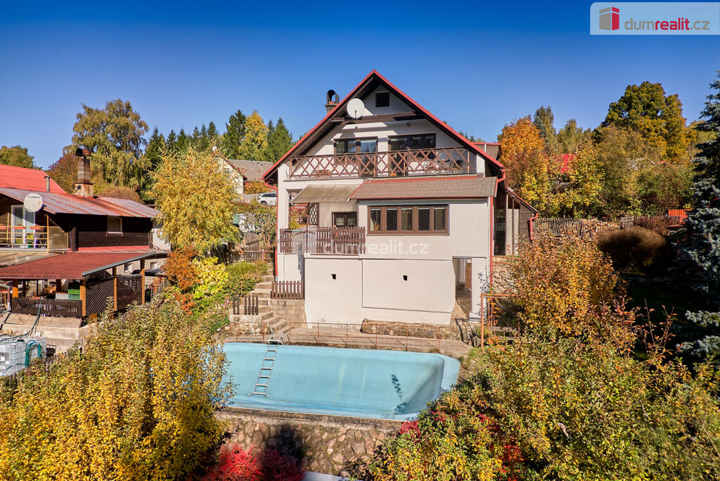 V zahradě naleznete bazén, kde se můžete v horkých letních dnech osvěžit. Samotný dům byl dostavěn v roce 2001 a zdá se, že ho čas šetřil. Jedná se o částečně podsklepený dvoupodlažní objekt určený k trvalému obývání. Přízemí nabízí prostornou halu s kuchyňským koutem, jídelnou a spížemi, hostinský pokoj a sociální zařízení. V patře najdete dvě prostorné ložnice s výstupem na terasu, obývací pokoj, kuchyň se spíží a další sociální zařízení. K dispozici je také podkroví, které lze dále využít podle vlastních potřeb. Dům má dva samostatné vchody, dispozičně tedy může sloužit jako vícegenerační.