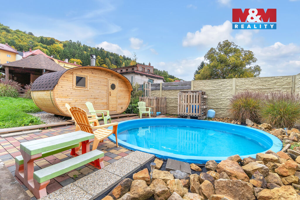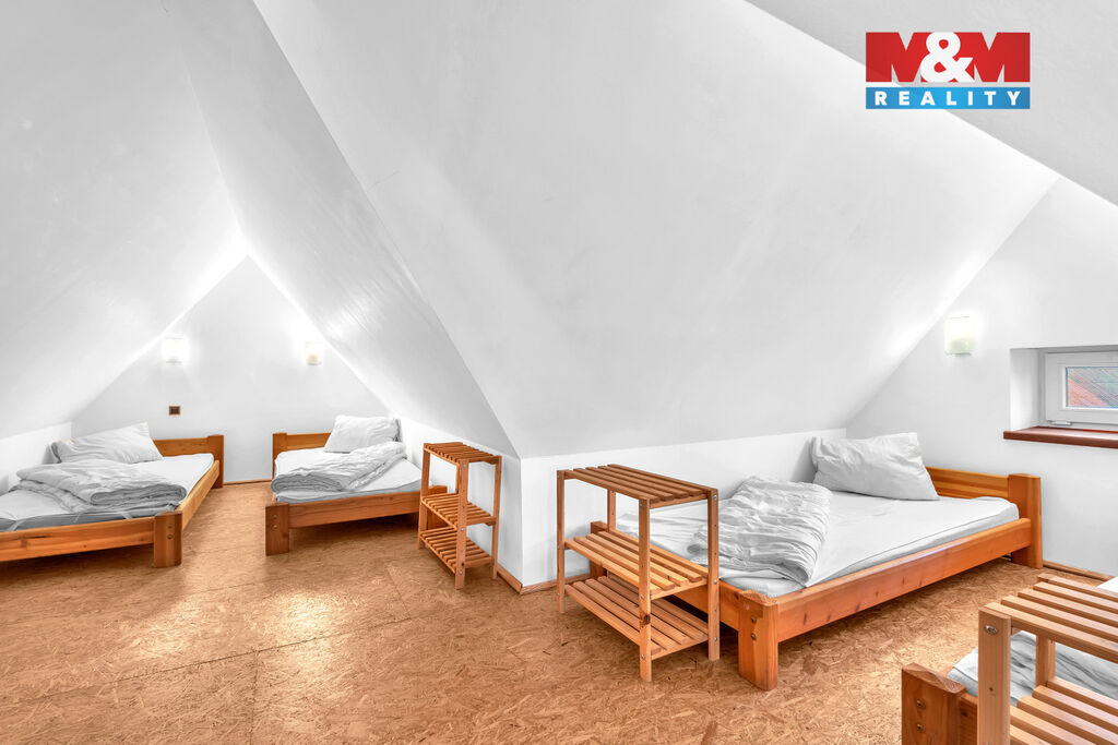 Nabízíme k prodeji jedinečný rodinný dům v centru obce Žacléř, který je aktuálně využíván jako penzion. V přízemí se nachází plně vybavená kuchyň propojená s obývacím pokojem, kde nechybí krbová kamna napojena na celý topný systém včetně ohřevu vody, dále ložnice a koupelna se sprchovým koutem a WC. V prvním patře najdete tři ložnice a koupelnu s vanou, sprchovým koutem, WC a bidetem. Podkroví je upraveno na pokoj se šesti lůžky. Sklep je využíván jako společenská místnost se saunou a sprchou. Na zahradě je k dispozici bazén, trampolína, sauna a pergola. Dům je ve velmi dobrém stavu. V okolí najdete široké možnosti pro volnočasové aktivity – od turistických tras a cyklostezek až po lyžařské areály Prkenný Důl a Bret. V obci se nachází veškerá občanská vybavenost. Přístup do obce v blízké budoucnosti zrychlí dálnice D11 s odhadovaným dokončením v roce 2028. Nemovitost je tedy ideální investice pro podnikání i rodinné bydlení. Pro domluvení prohlídky a další informace volejte makléře.