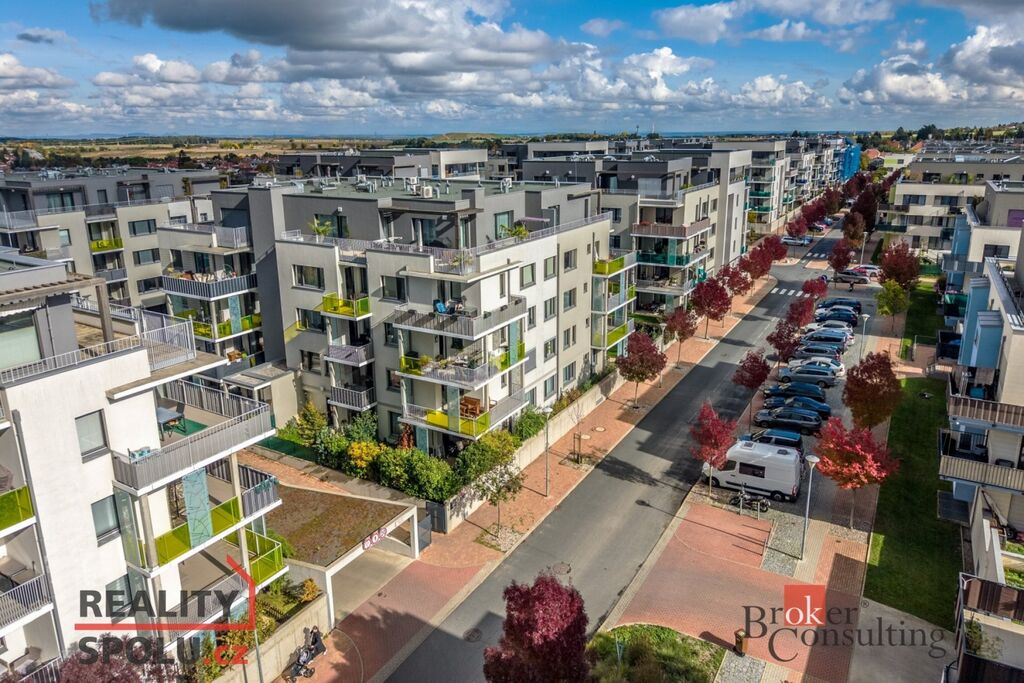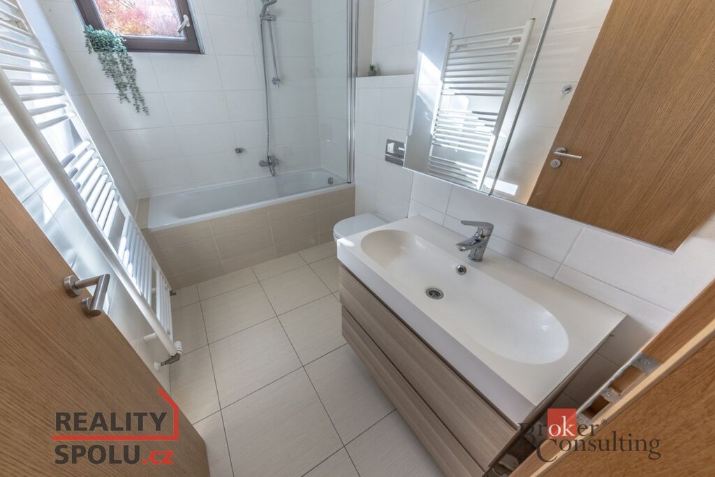 Obývací pokoj s kuchyňským koutem vybavený vestavěnými spotřebiči je vzdušný, prostorný díky velkým oknům a s přímým vstupem na terasu se zahradou (zde je i přívod vody). Obývací pokoj je oddělený posuvnými dveřmi do pouzdra od samostatných ložnic ( s rozlohu 13 m² a 13,9 m² ), které poskytují dostatek soukromí pro rodinu či práci z domova. V ložnici i předsíni jsou prostorné, vestavěné skříně. Samozřejmostí je koupelna s vanou, umyvadlem a toaletou, dále je v bytě samostatné WC, tato místnost je nyní využívána jako komora. Byt se nachází ve zvýšeném přízemí, není na úrovní chodníku, skýtá dostatek soukromí a bezpečí. Orientace bytu je na východ a jih, okna v celém bytě mají bezpečnostní fólie, dále jsou vybavena předokenními roletami s elektrickým ovládáním, které lze ovládat manuálně i dálkově telefonem přes aplikaci. V celém bytě je nainstalovaný bezpečnostní systém Jablotron a vstupní dveře jsou bezpečnostní.