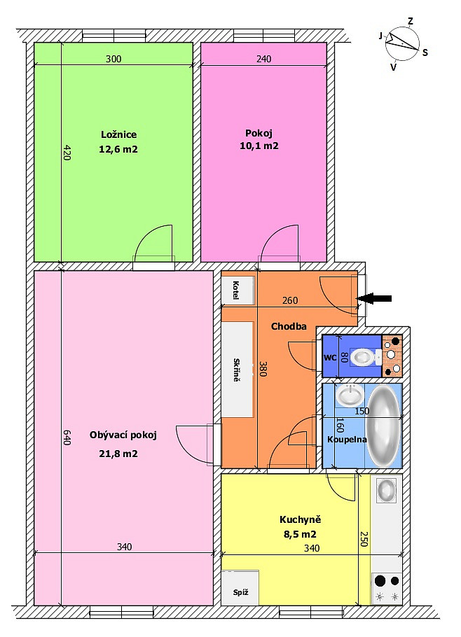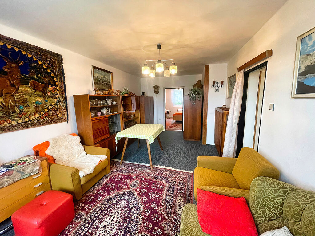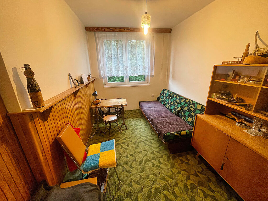 Podlahová plocha bytu činí 71,4 m², přičemž všechny tři pokoje mají zachovalé dřevěné parkety. Byt je ve velmi udržovaném původním stavu, nabízí bydlení s etážovým topením na tuhá paliva (kotlem v bytě), který ohřívá radiátory. K bytu patří tři prostorné sklepy. V koupelně se nachází elektrický bojler. Díky nízkým provozním nákladům je tento byt ideální volbou pro rodinu i jako investiční příležitost.