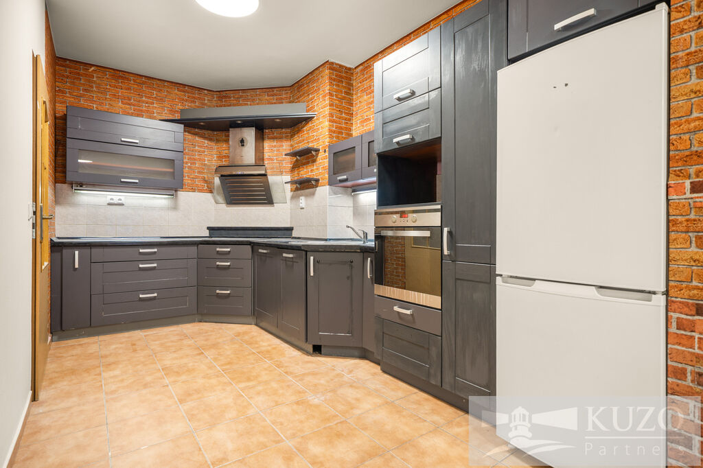 Byt tvoří prostorný obývací pokoj spojený s kuchyňským koutem, který je vybaven moderní kuchyňskou linkou ve tvaru „L“ s dostatkem úložného prostoru a spotřebiči včetně myčky, elektrické trouby, varné desky, digestoře a prostorné lednice. Na lodžii je přístup jak z obývací místnosti, tak z ložnice, odkud se nabízí příjemný výhled do zeleně. K bytu dále patří samostatná koupelna a toaleta, technická místnost vhodná pro skladový prostor. Součástí bytu je také sklepní kóje, která poskytuje další úložný prostor.