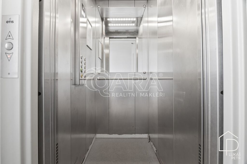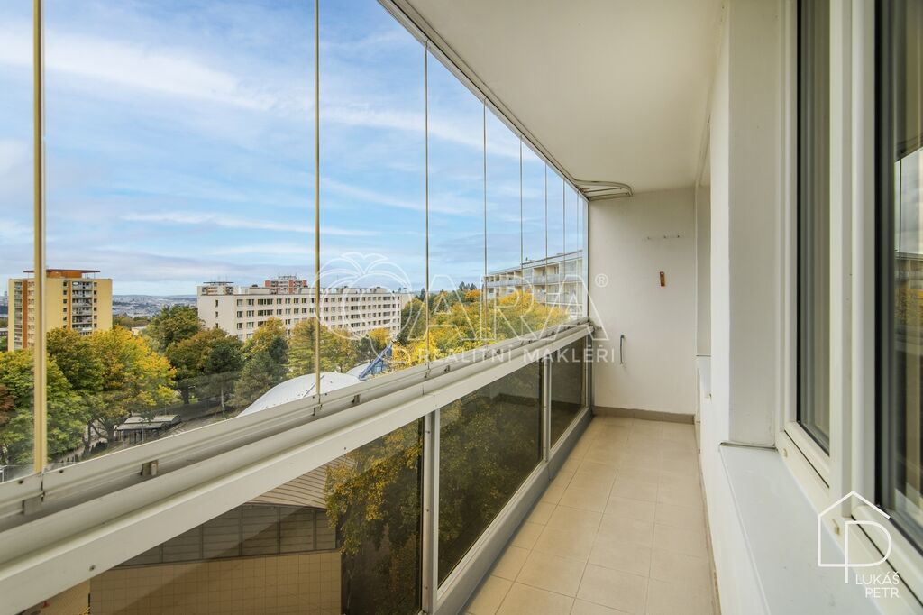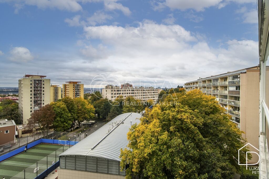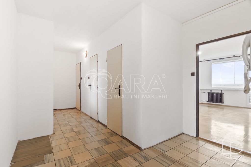 Výtah vás vyveze až ke dveřím, za nimi poctivý byt 3+1 s lodžií, ze které se Praha rozprostře jako na dlani. Ten výhled má něco do sebe — mění se s denní dobou, ale nikdy neomrzí.