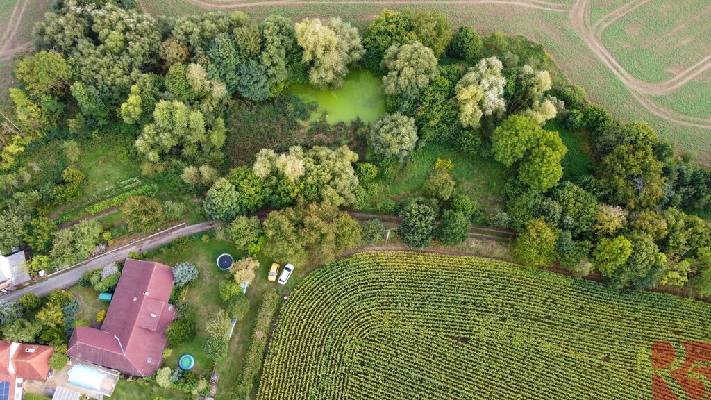 K domu je zahrada o rozloze 2 875m2 jen 30 m od domu, situovaná na hrázi rybníka s malým potůčkem, osázená ovocnými stromy, ideální k chovu zvířat, nebo pěstování zahradních a rostlinných plodin.