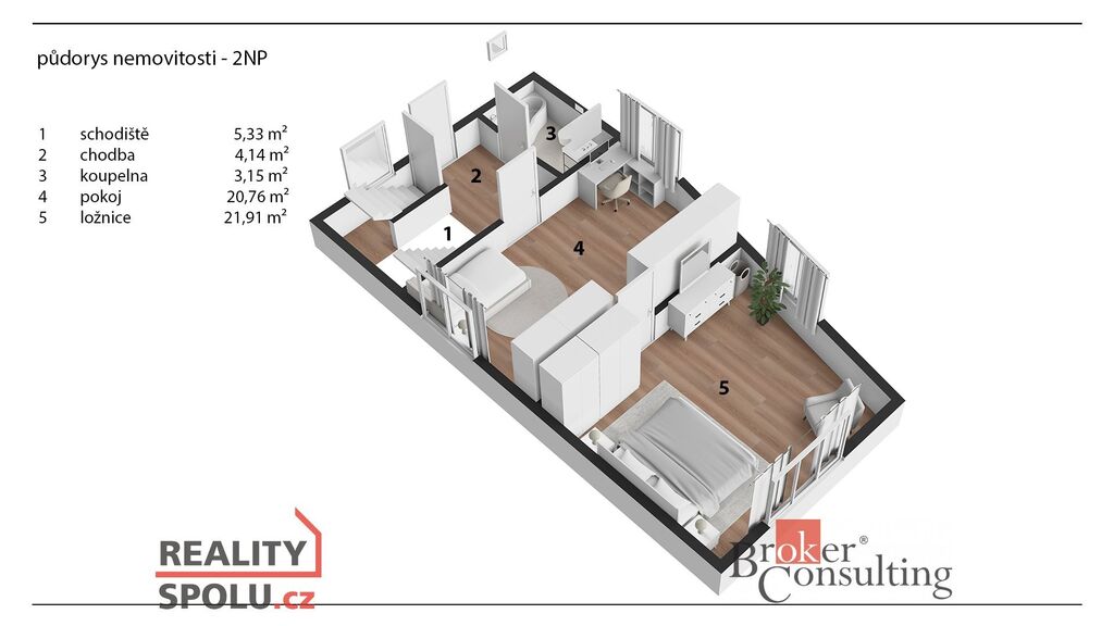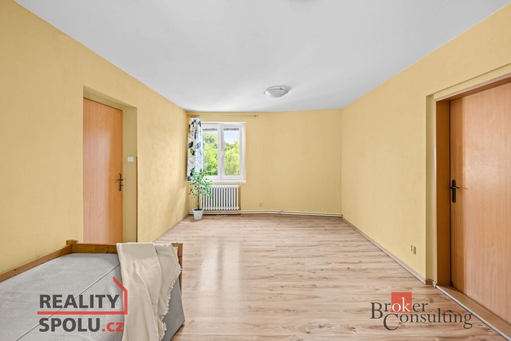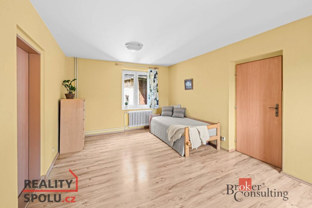 Z vybavení na fotografiích v domě zůstává: kuchyňská linka (kromě lednice), velká šatní skřín v horní ložnici. Jinak budou pokoje prázdné a připravené na nastěhování.