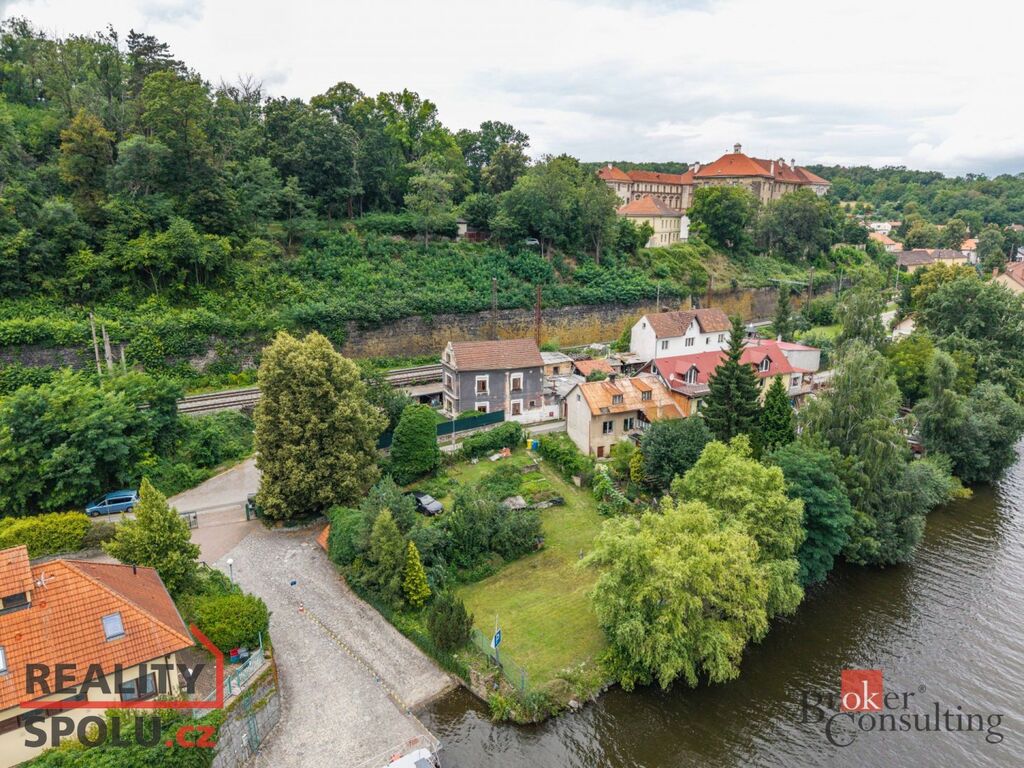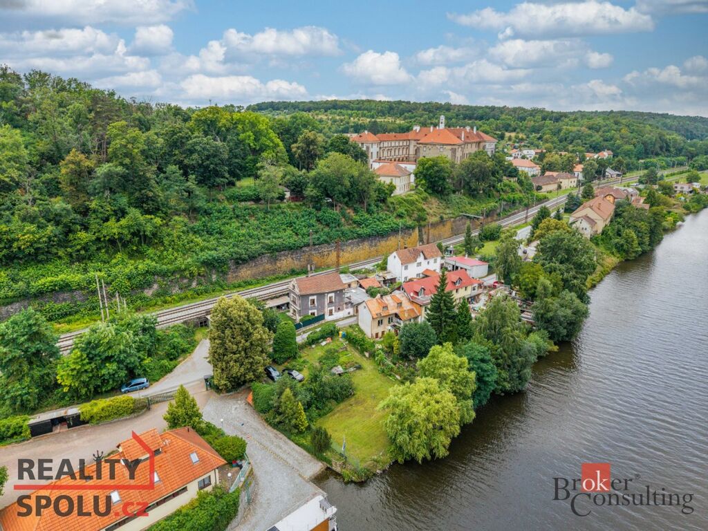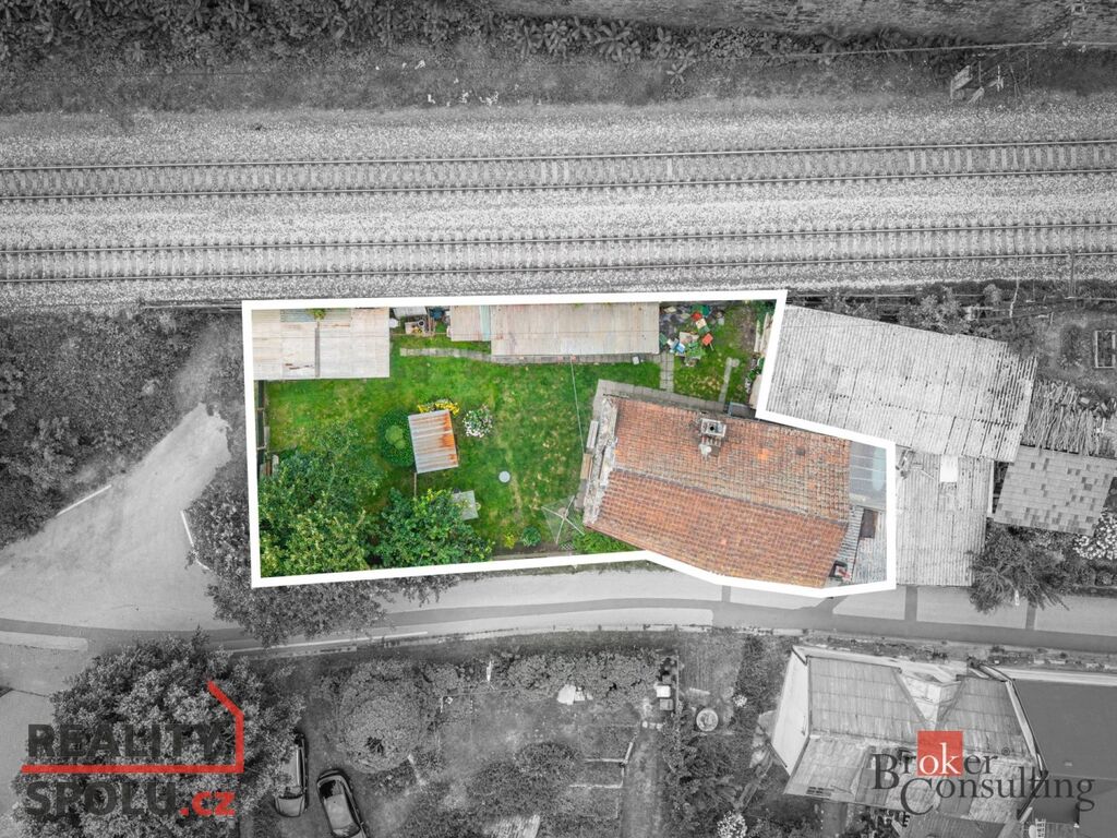 Za domem se rozkládá menší zahrada, vhodná k odpočinku, pěstování nebo jako zázemí pro děti. Je však potřeba počítat s tím, že přímo za domem vede železniční trať. Přestože to znamená vyšší hlukovou zátěž, přináší to také mimořádnou dopravní výhodu – vlaková zastávka „Nelahozeves zámek“ je vzdálena jen pár minut chůze a nabízí rychlé spojení do Prahy, kam se dostanete za zhruba 35 minut. Autem je to přibližně 25–30 minut na severní okraj Prahy (Letňany, Kobylisy).