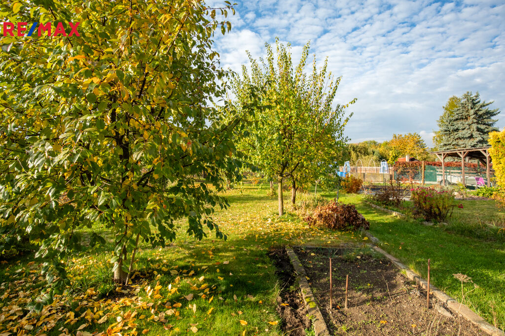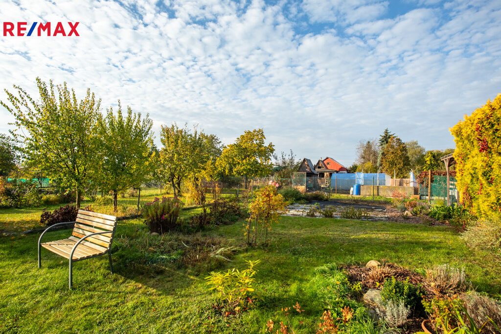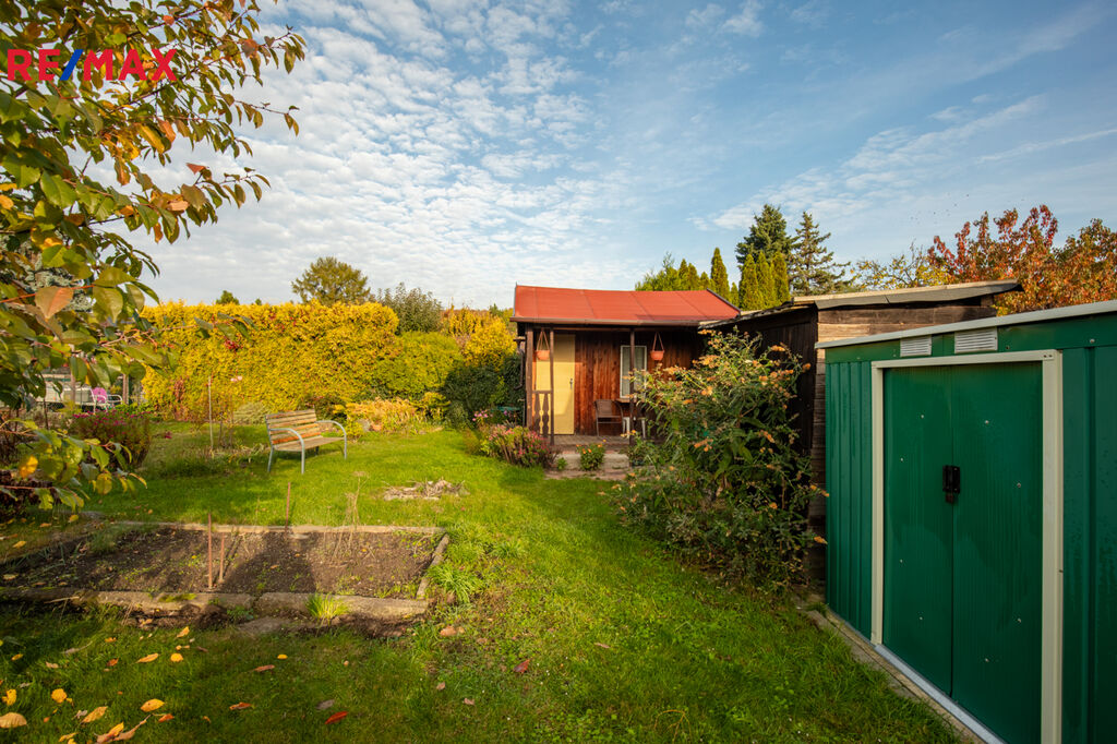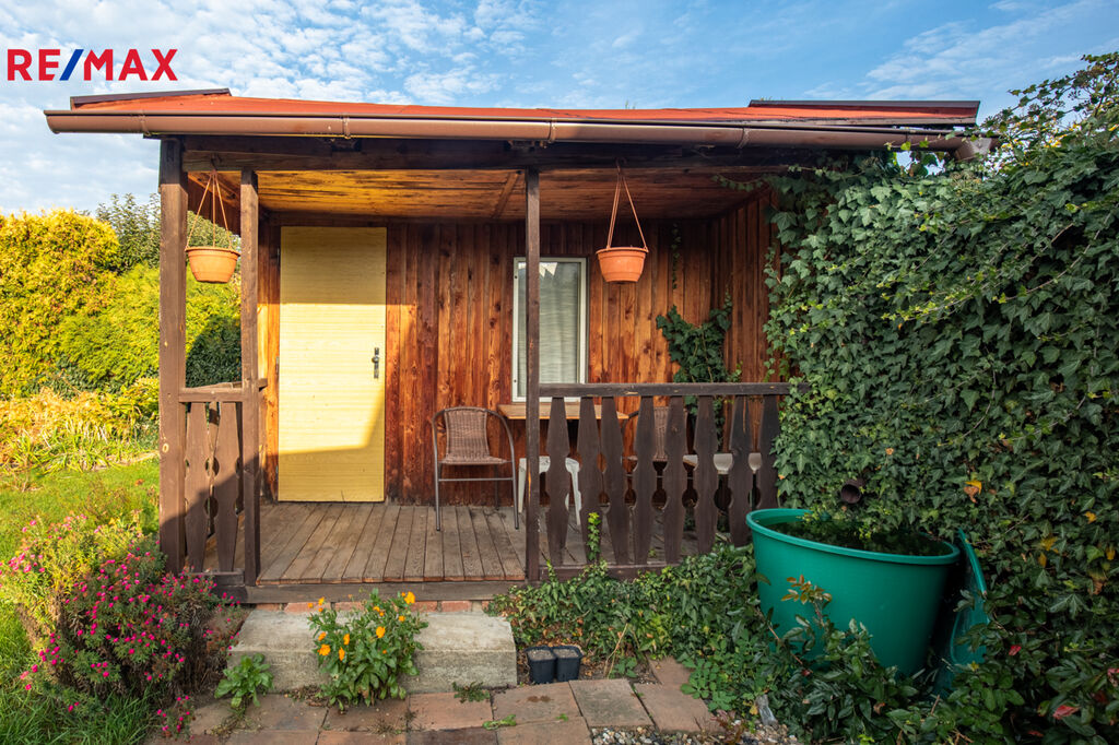 Na pozemku se nachází částečně podsklepená zahradní dřevěná chatka s verandou s plochou 17 m2 , ( rozměry chtky cca 4,8 m x 3,5 m) Část zahrady je zatravněná, vhodná pro každodenní i víkendovou relaxaci celé rodiny. Rostou zde ovocné plodící stromy a keře.