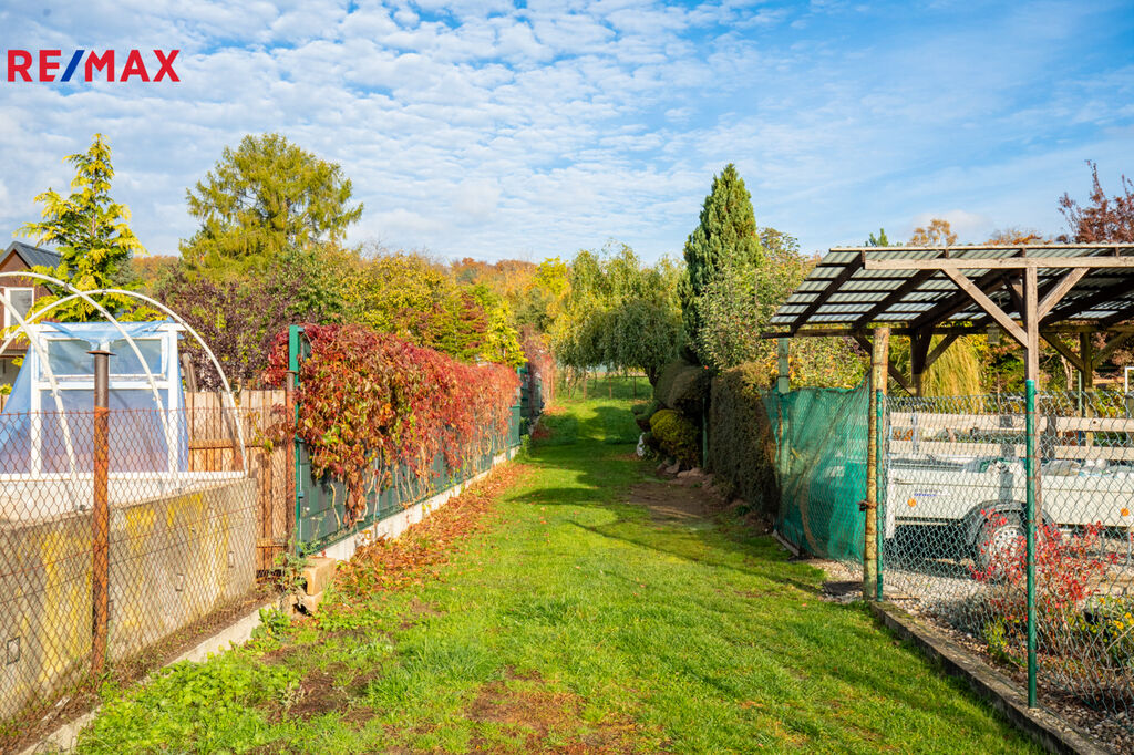 ✅ Oplocený pozemek nabízí soukromí, plodící ovocné stromy: jabloň, meruňka, švestka špendlík, višeň, ovocné keře: kanadské borůvky a angrešt. záhonek pro pěstování zeleniny / rajčata a okurky)