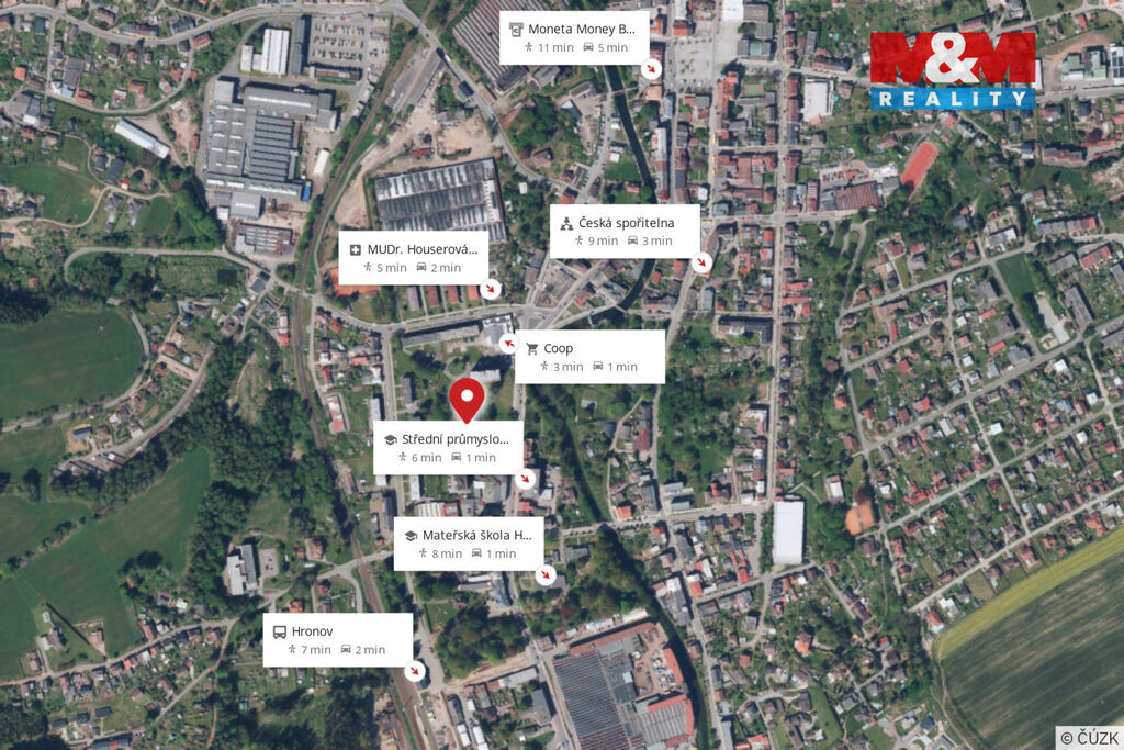 V okolí se nachází veškerá občanská vybavenost – obchody, školy, lékař, MHD i vlakové spojení. Parkování je možné přímo u domu.