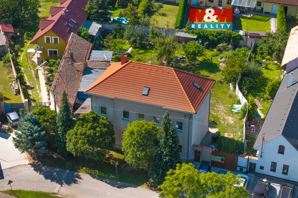 Nabízíme k prodeji prostorný RD v klidné a bezpečné lokalitě s výbornou dostupností do Roudnice nad Labem a Litoměřic. Ideální pro rodinné bydlení i investici. Dům má 2 podlaží, půdu s možností vybudování dalšího bytu, rozlehlý pozemek o rozloze 1300 M2. V 1.NP se nachází byt o výměře 102,33 M2 s dispozici 3+1, nová kuchyňská linka se spotřebiči. Byt určen k rekonstrukci. Ve 2.NP se nachází byt o výměře 101,79 M2 s dispozici 4+1, který je obyvatelný v dobrém stavu, instalovaný nový elektrický bojler na ohřev vody. Střecha nová dělaná před 15 lety, též plastová okna v celém domě. V některých místnostech nová elektroinstalace. Dům má 2 studny, na jednu je napojen. V kotelně je nový kotel 2 roky na dřevo a uhlí. Splňuje emisní normy.Zahrada vhodná pro rodinu, chov zvířat nebo další stavbu. V místě školka, obchod, ranč s možností ustájení koní. Součástí jsou také původní kůlna a chlívy, které lze přetvořit na dílnu, sklad, ateliér či další obytný prostor – ideální pro propojení s bydlením