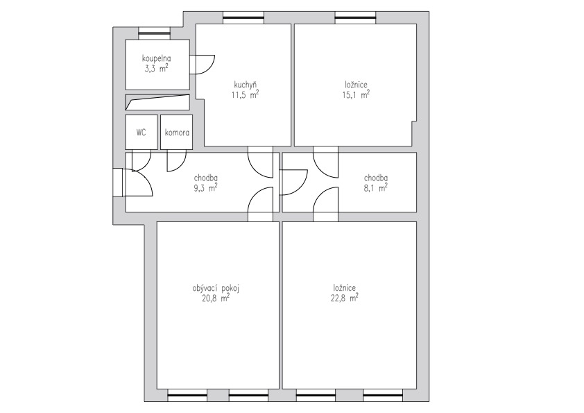 K bytu náleží i sklep o rozloze 2,4 m2.