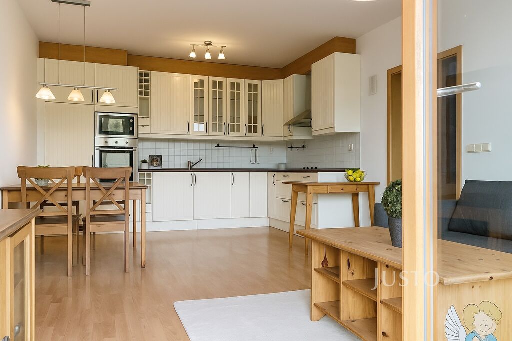 Nabízíme k pronájmu kompletně zařízený byt 2+kk (53 m² + balkon 6 m²) ve 3. patře moderní rezidence Barrandovský dvůr, s garážovým stáním.