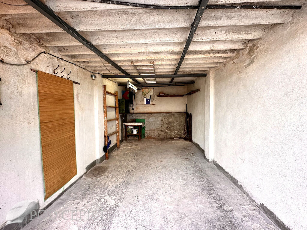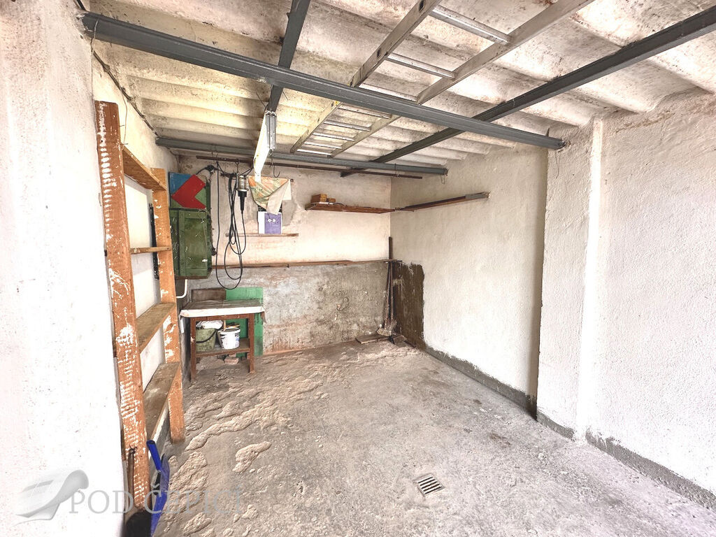 Cihlová garáž stojící na parcele o výměře 16m2 má vjezdový otvor o rozměrech 2,03m x 2,00m (šířka x výška). Vnitřní rozměr garáže je 5,44m x 2,82m (délka x šířka). Střecha garáže je pultová, v nedávné minulosti opatřena novou krytinou (viz fotodokumentace). Do garáže je zavedena elektřina.