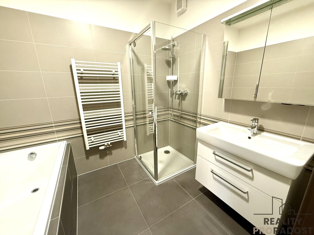 Dále zde najdete ložnici, pokoj s vestavěnou skříní, koupelnu s vanou i sprchovým koutem, samostatné WC s umyvadlem a komoru s přípojkou na pračku. Velkým benefitem jsou i vestavěné skříně a dostatek úložného prostoru.