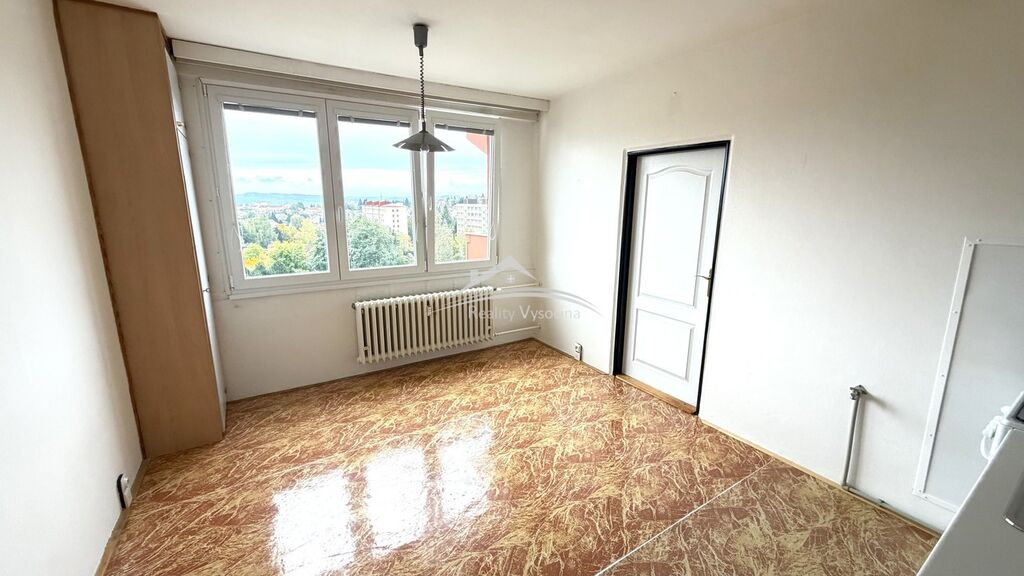 Nabízíme v exkluzivním zastoupení pěkný panelový byt 1+1 o výměře 36 m², který se nachází v 9. NP revitalizovaného bytového domu. Byt má nový, prostorný balkon o velikosti 4 m² orientovaný na jihozápad s krásným výhledem na město Pelhřimov.