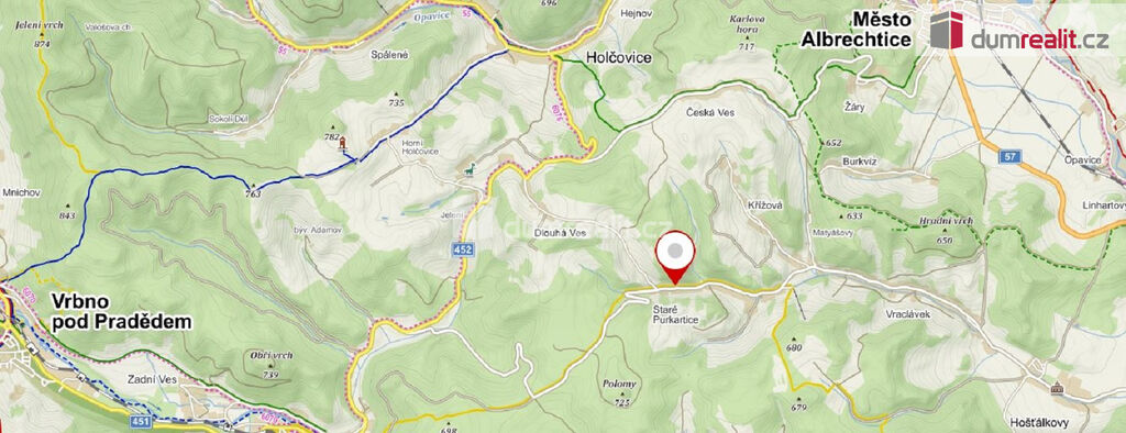 Dumrealit.cz Vám zprostředkuje prodej pozemek o výměře 953 m² v obci Dlouhá Ves (přímo navazující na rekreační osadu Staré Purkartice), situovaný mezi zástavbou rodinných domů a přístupný po veřejných pozemcích ve vlastnictví Správy silnic a dálnic a Města Krnov. V blízkosti pozemku se nachází Ski areál Vraclávek. Na hranici pozemku sloup elektrického vedení, čerpání vody příp. řešit vrtem jako u sousedního pozemku, kanalizace v obci není. Dle katastru nemovitostí je pozemek veden jako ostatní plocha. V okolí je množství turistických a cykloturistických tras, ideální východisko pro výlety do okolí. Dlouhá Ves je malá vesnice, část obce Holčovice v okrese Bruntál, nacházející se asi 2 km od Holčovic a 9 km od Města Albrechtice. Dlouhá Ves je i názvem katastrálního území. Více informací u makléře. V případě zájmu mne neváhejte kontaktovat. Ev. číslo: 633566.