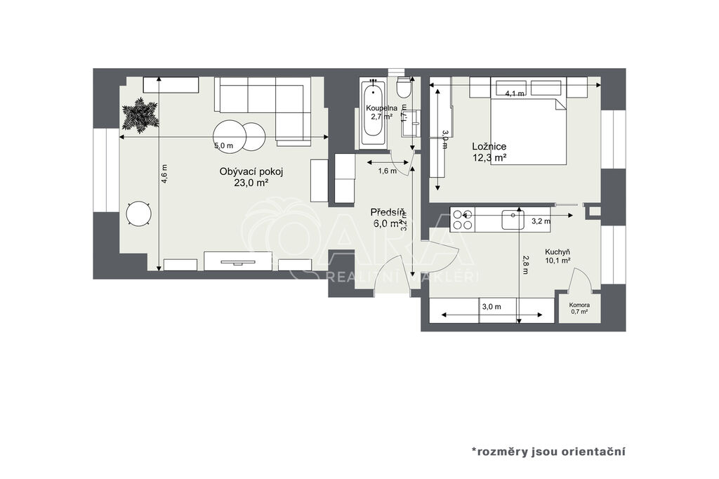 Byt o dispozici 2+1 má výměru bezmála 55 m² a k tomu i praktickou sklepní kóji. Dispozice je promyšlená do posledního detailu – oba pokoje jsou neprůchozí, kuchyň je samostatná a vše doplňuje prostorná předsíň a koupelna s toaletou. Dominantou bytu je obývací pokoj, který nabízí dostatek prostoru pro rodinná setkání, odpočinek i posezení s přáteli. Interiér působí útulně a vzdušně, a co je nejdůležitější – byt je připravený k okamžitému nastěhování.
