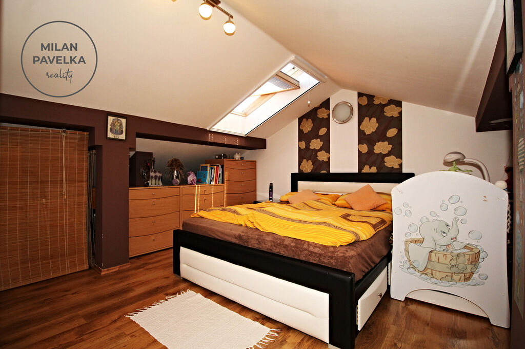 Podkroví o užitné ploše 29,9 m² včetně úložného prostoru pod šikmou střechou je aktuálně klidové místo pro spaní.
