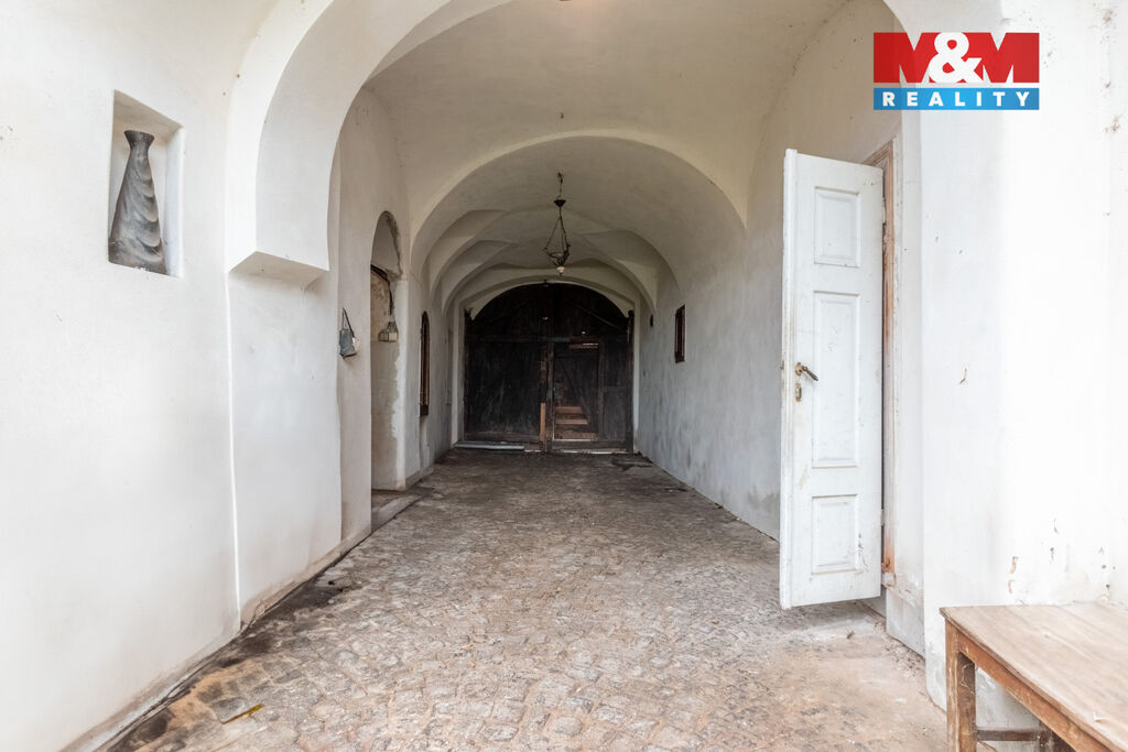 Nabízíme k prodeji unikátní historický dům v centru městečka Švihov, o celkové výměře 378 m². Tato nemovitost s částečně dokončenou rekonstrukcí nabízí široké možnosti využití, od bydlení až po zřízení penzionu. V přízemí se nachází obchůdek s výlohou a vstupem z ulice o ploše 42 m² a navazující byt 1+1 o výměře 50 m², před rekonstrukcí. Dále zde najdeme uzavřený průjezd s možností parkování pro 2 vozidla a byt se 4 pokoji a sociálním zařízením o velikosti 62 m². V patře je 7 částečně zařízených obytných místností, kuchyň, spižírna, sociální zařízení a pavlač s částečným výhledem na vodní hrad Švihov, známý z pohádky Tři oříšky pro Popelku. Rozměrná půda je vhodná pro obytnou vestavbu. Dům je částečně podsklepen. Na dvoře je k dispozici zděné stání pro 2 automobily a kolna. Okrasná zahrada o 207 m² je vybavena zapuštěným bazénem. Nemovitost je napojena na zemní plyn, veřejnou kanalizaci a vodovod. V obci veškerá občanská vybavenost.