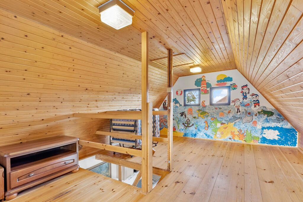 Chatka je v základu zděná s dřevěným podkrovím a má zastavěnou plochu 25 m². V přízemí se nachází útulný obývací prostor s kuchyňským koutem a místem pro jídelní část – ideální zázemí pro víkendové pobyty i delší rekreaci. V podkroví je ložnice až pro čtyři lůžka, s dostatečnou výškou stropu i pro pohodlné spaní dospělých osob.