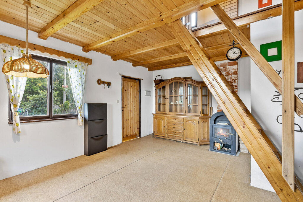 Do stavby je zavedena elektřina i obecní voda. Toaleta je aktuálně řešena chemickým WC, přičemž kanalizace je dostupná v hlavní ulici. Vytápění je možné doplnit např. kamny nebo přímotopy, což z prostoru dělá objekt využitelný téměř celoročně.