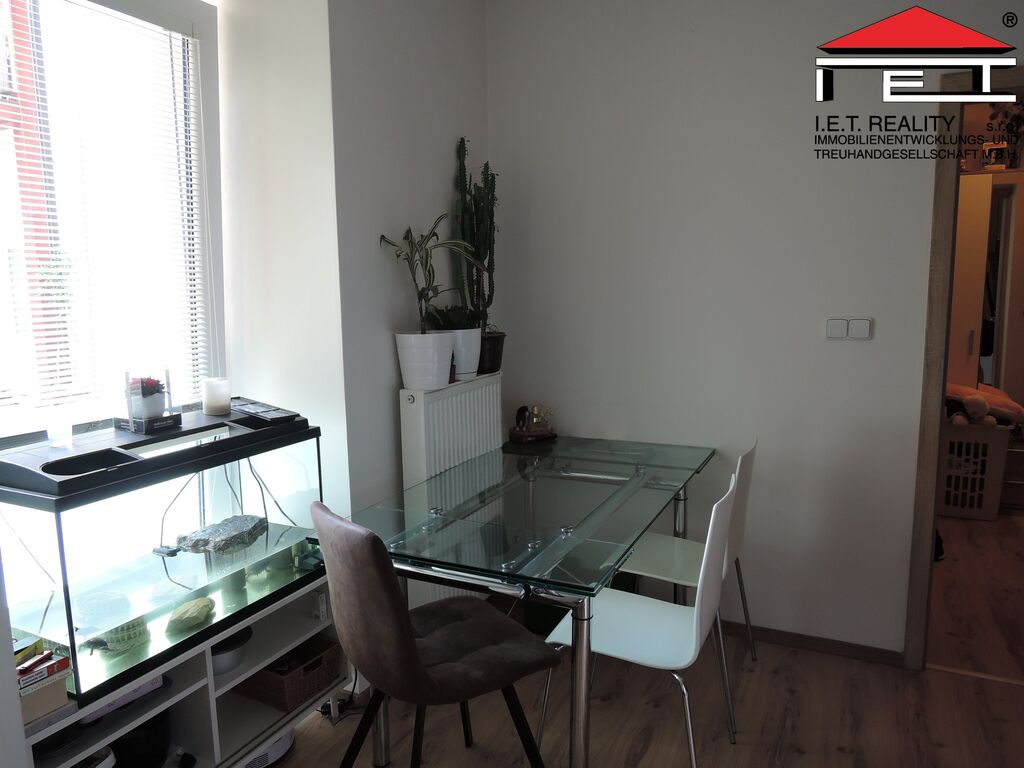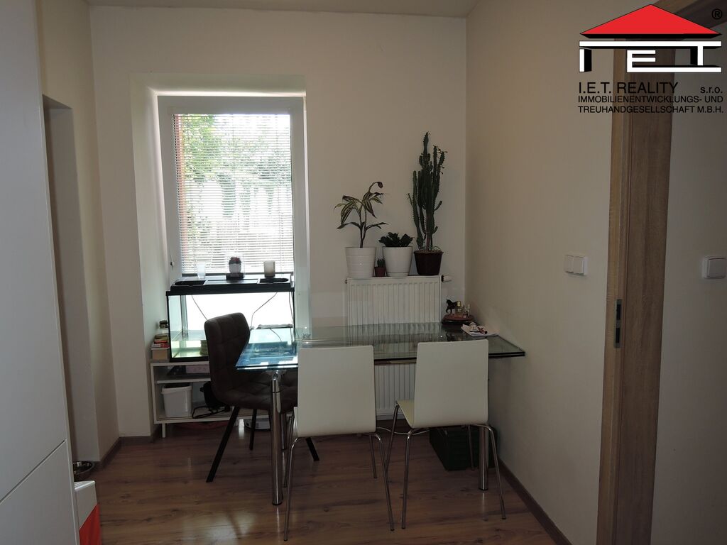 Byt 1+1 o velikosti cca 38m2 nacházející se v přízemí cihlové novostavby je vybavený rohovou kuchyňskou linkou se spotřebiči (lednice s mrazákem, sklo-keramická varná deska, digestoř - úsporné spotřebiče Elektrolux.