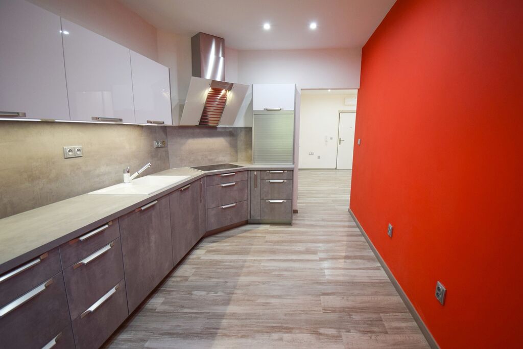 3 pokoji, kuchyní, samostatným wc a koupelnou. K bytu náleží lodžie a sklepní jednotka. Byt se nabízí částečně zařízený luxusní kuchyňskou linkou vybavenou spotřebiči Miele. V koupelně je sprchový kout i vana, na podlaze vinyl v šedé barvě a nadstandardní kvalitě.
