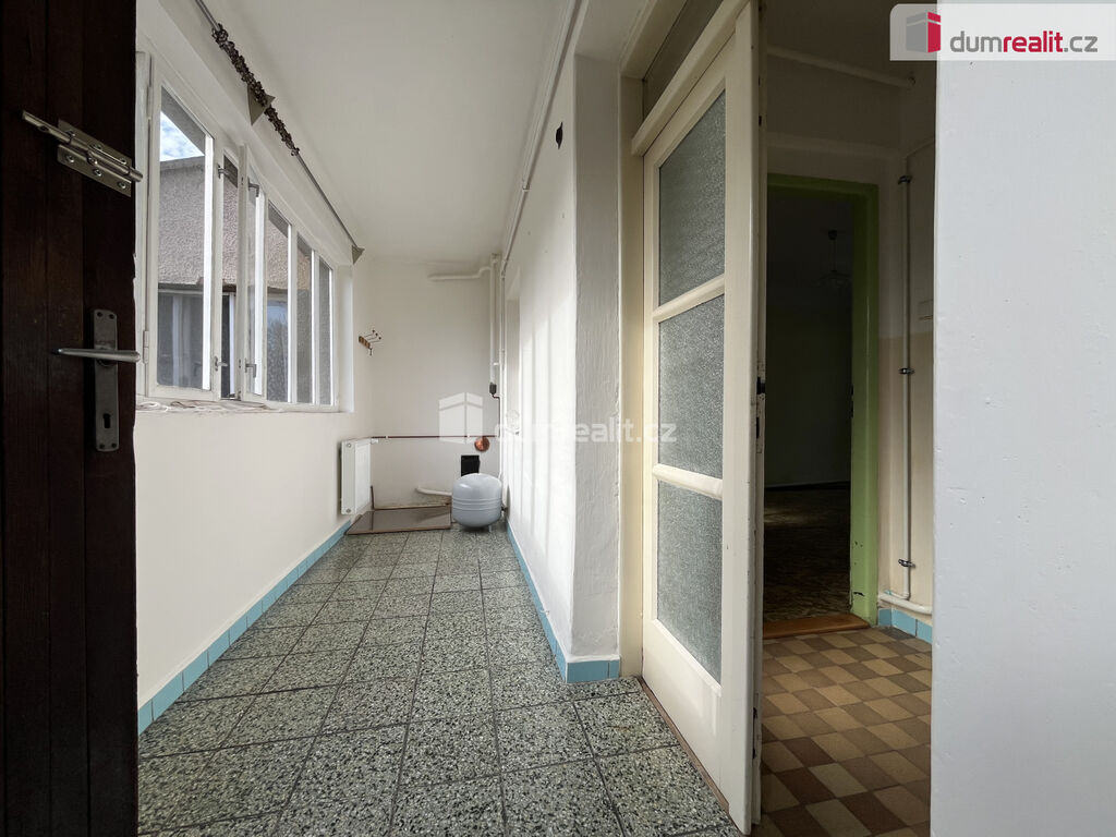 Vstup do domu je přes verandu, situovanou do dvorka, na kterou navazuje menší chodba s koupelno a záchodem, dále projdeme do velké kuchyně se spižírnou. Půdorys má tvar písmene L, tudíž z kuchyně je vstup do prvního pokoje a dále do druhého pokoje, jehož okno směřuje do dvorku. Domek je již nějakou dobu neobydlený, což se odráží na omítce zdí obou pokojů.