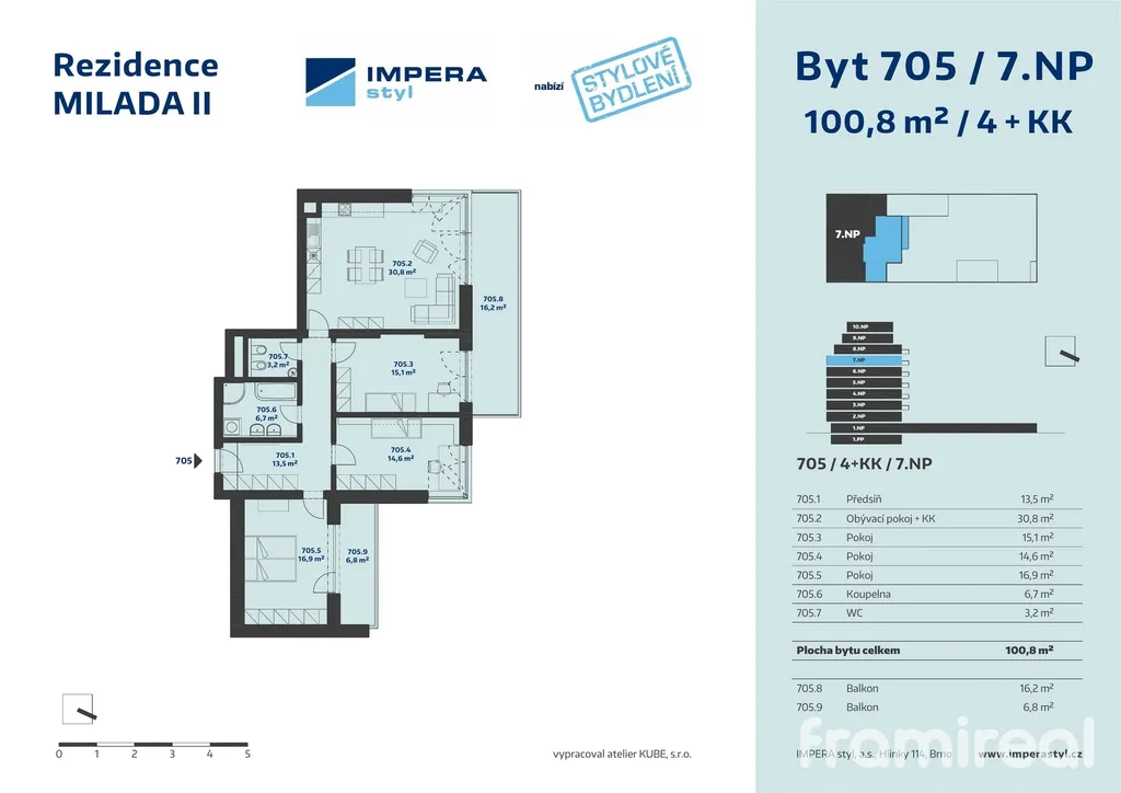 Nabízíme k pronájmu moderní, nadstandardně prostorný byt 4+kk o velikosti 111 m², který se nachází v reprezentativním bytovém domě na ulici Milady Horákové v Brně.