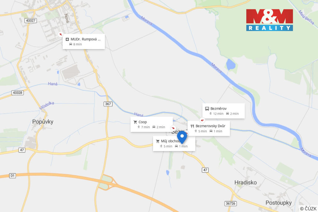 Nabízíme k prodeji rovinatý pozemek určený k výstavbě o rozloze 843 m² v malebné a klidné obci Bezměrov. Parcela je ideální pro realizaci výstavby rodinného domu a má veškeré inženýrské sítě již přímo na pozemku. Nemovitost sestává ze dvou staveb – jedna je určena k demolici, druhá v současnosti slouží jako garáž. Lokalita vyniká výbornou dostupností na dálnici D1, která zajišťuje rychlé spojení do blízkých měst. Obec Bezměrov nabízí částečnou občanskou vybavenost, díky níž poskytuje pohodlné a klidné bydlení v blízkosti přírody, avšak s výhodou dobré dopravní dostupnosti. Tato nabídka představuje příležitost pro ty, kteří hledají spojení klidu venkova s dobrou dostupností města. Neváhejte kontaktovat makléře pro více informací nebo sjednání osobní prohlídky.
