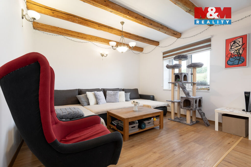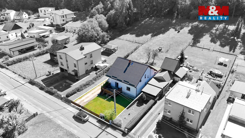 Dům se nachází na klidném místě, téměř na konci obce s přátelským sousedstvím, jehož tváří jsou jednoznačně pohádková kamna, která zdobí a propojují interiér a zároveň tak vyhřívají celé přízemí.