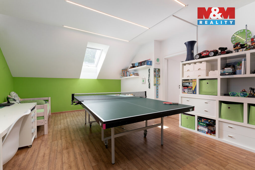 Ve druhém poschodí se nachází klidová zóna, ale je možno rozšířit podkroví a vybudovat vícegenerační bydlení.